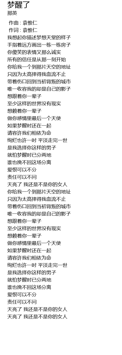 | [03:35.000] | tian liang le wo hai shi bu shi ni de nv ren |