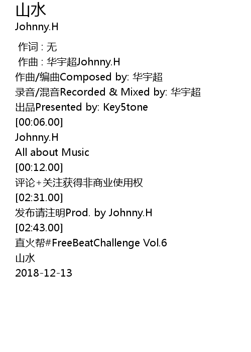 | [02:31.56] | 发布请注明Prod. by Johnny.H |