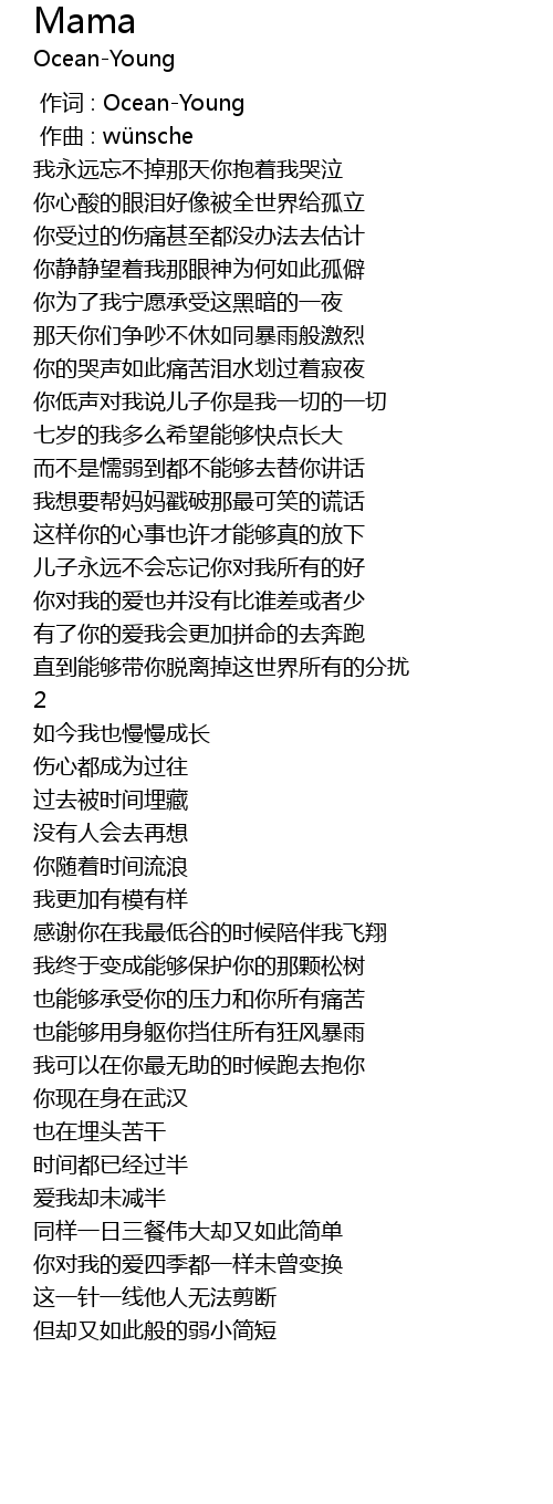 | [00:00.000] | 作词 : Ocean-Young |