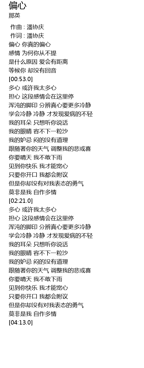 | [00:31.0] | piān xīn nǐ zhēn de piān xīn |