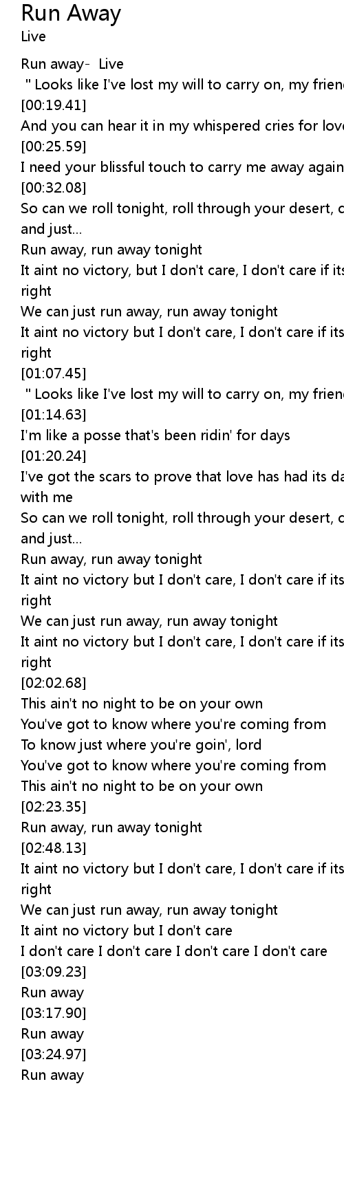| [03:21.92] | Run away |