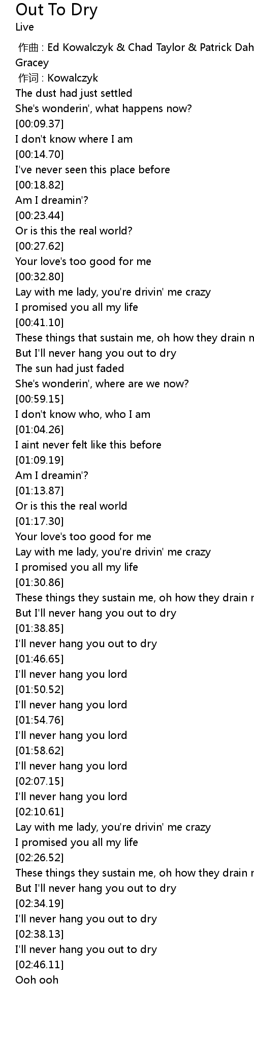 | [00:00.00] | zuo qu : Ed Kowalczyk Chad Taylor Patrick Dahlheimer Chad Gracey |