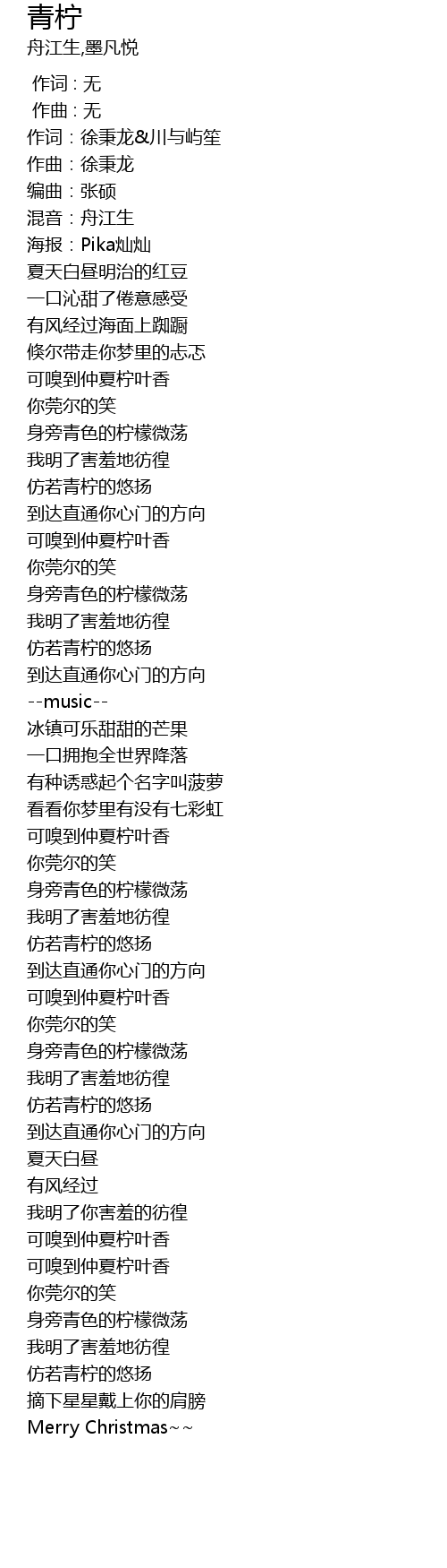 | [02:03.98] | 仿若青柠的悠扬 |