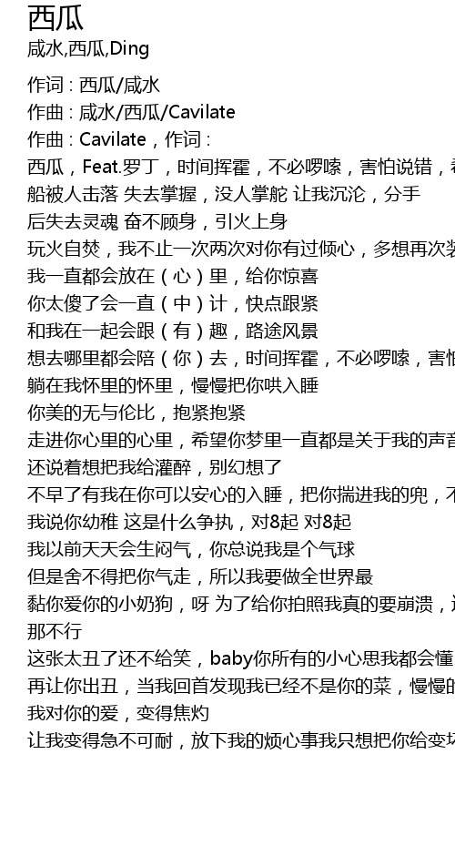 | 作词 : 西瓜/咸水 | |