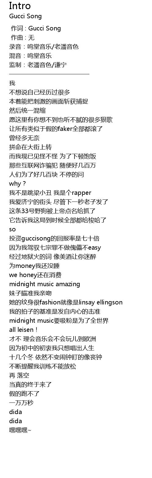| [00:00.000] | 作词 : Gucci Song |
