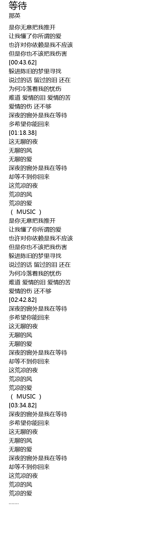 | [01:35.98] | 却等不到你回来 |