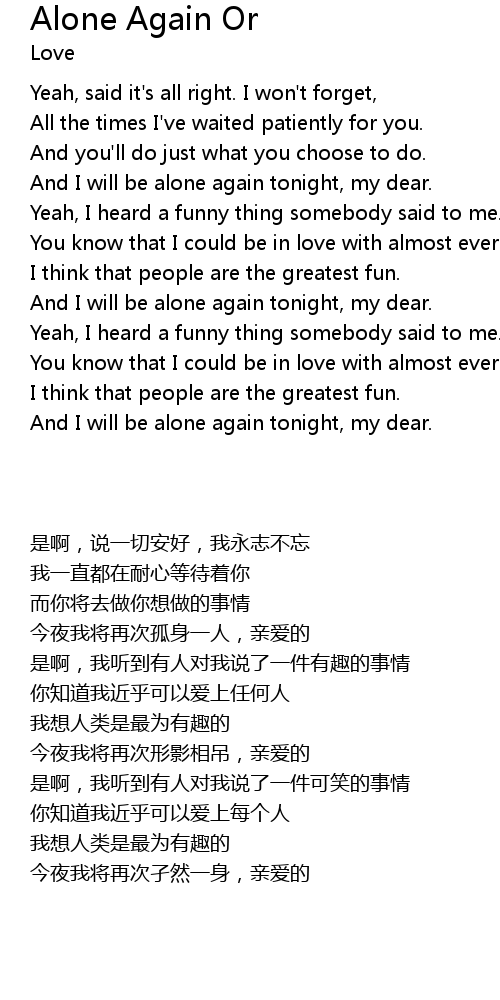 And I will be alone again tonight, my dear. |