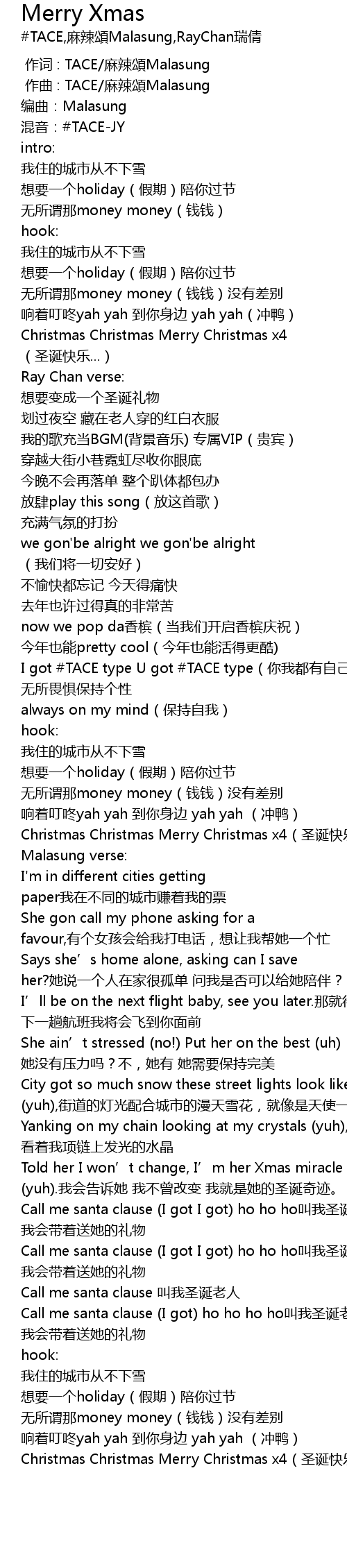 | [01:38.38] | Christmas Christmas Merry Christmas x4(圣诞快乐...) |