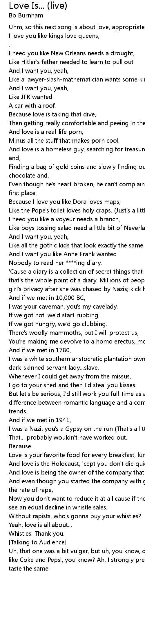 And love is a homeless guy, searching for treasure in the middle of the rain and, |