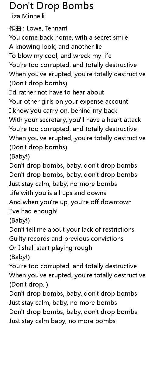 | Don' t drop bombs, baby, don' t drop bombs | |