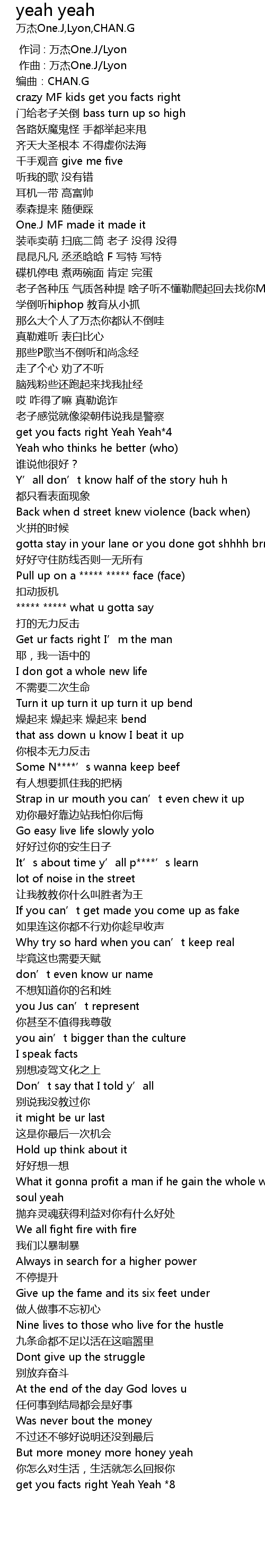 | [01:07.373] | get you facts right Yeah Yeah*4 |