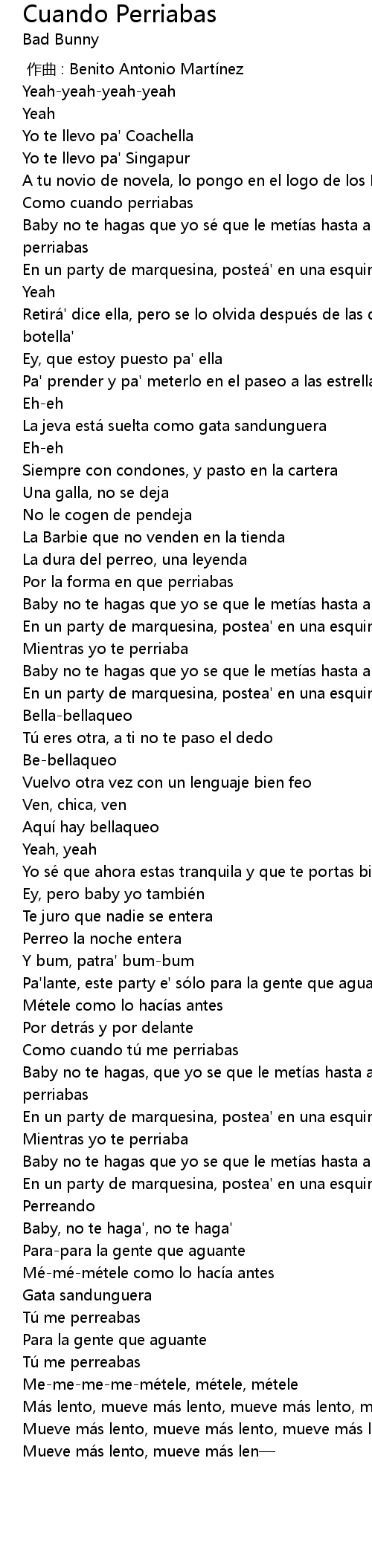 | [02:22.12] | Baby no te hagas que yo se que le metías hasta abajo cuando perriabas |