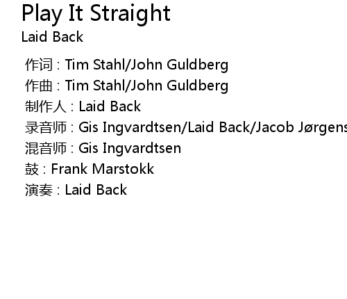 | [00:00.000] | 录音师 : Gis Ingvardtsen/Laid Back/Jacob Jørgensen |