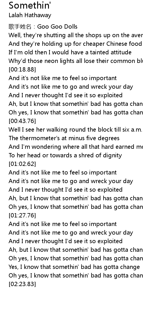 | [00:34.28] | Ah, but I know that somethin' bad has gotta change |