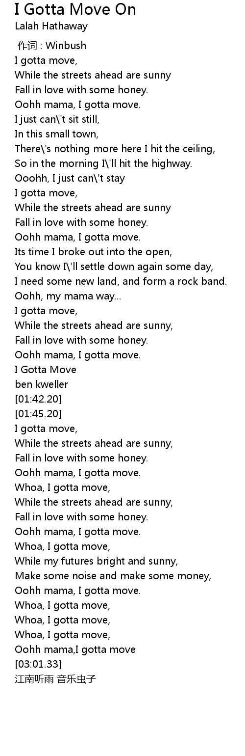 | [01:30.91] | I Gotta Move |