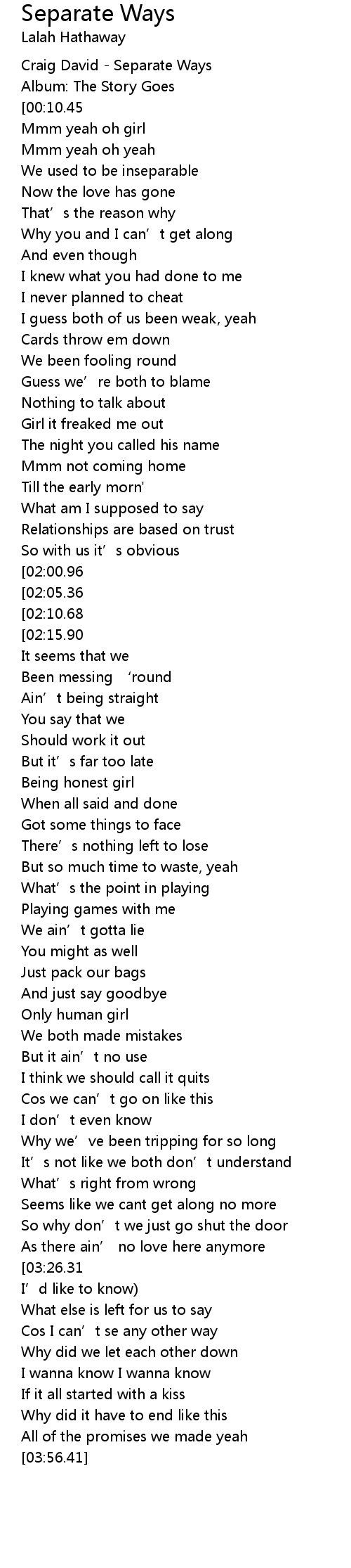 | [01:00.63][02:00.96][02:41.25][03:01.35] | Why don' t we go our separate ways |