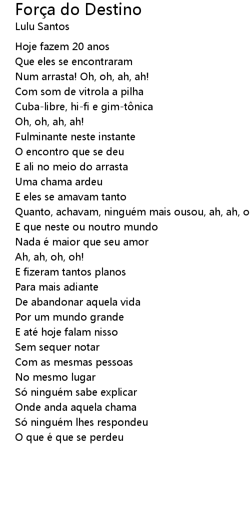 | Song | Força do Destino |