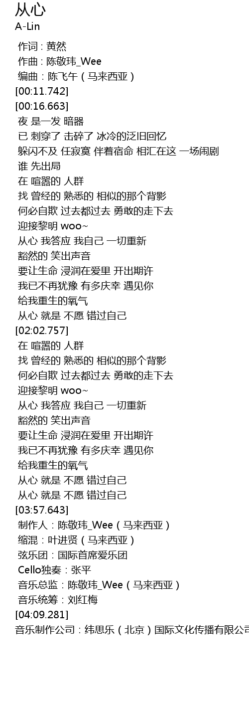 | [03:00.298] | 从心 我答应 我自己 一切重新 |