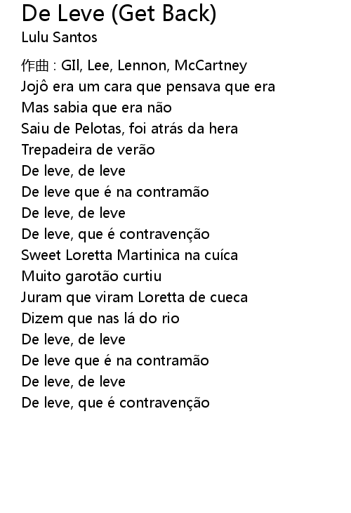 | Song | De Leve (Get Back) |