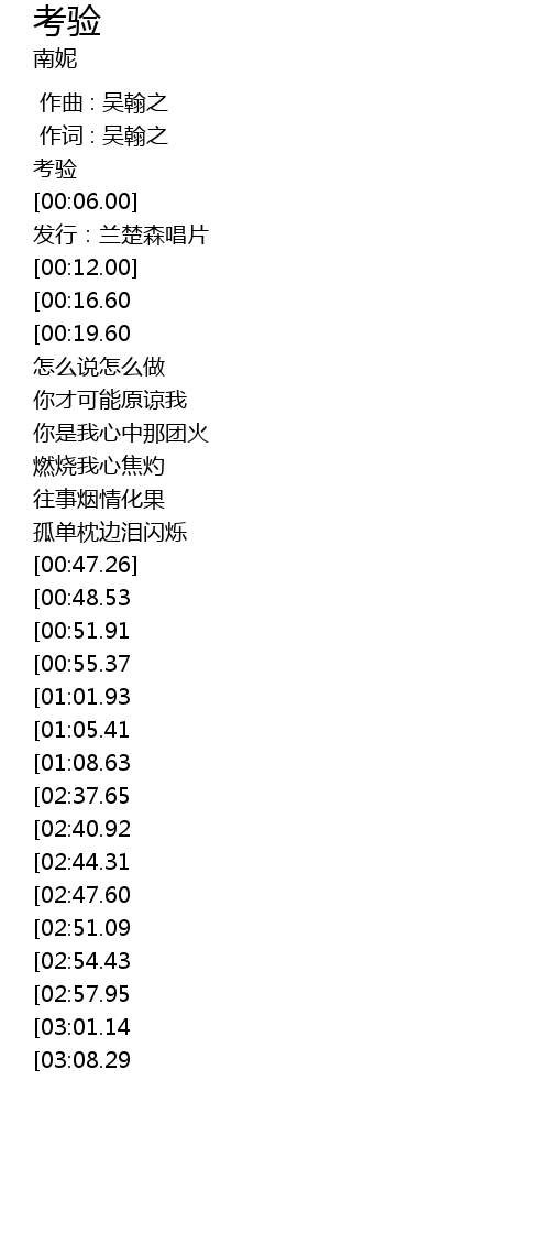 | [03:34.81][02:54.43][01:31.77] | zài gěi wǒ yī cì kǎo yàn |