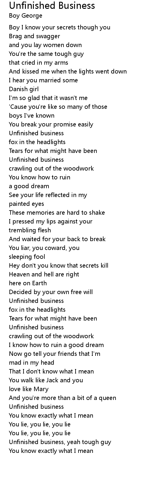 Boy I know your secrets though you |