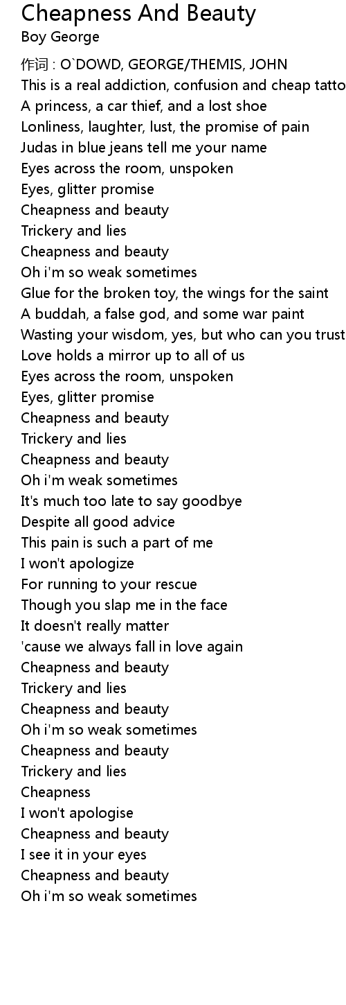 | Song | Cheapness And Beauty |