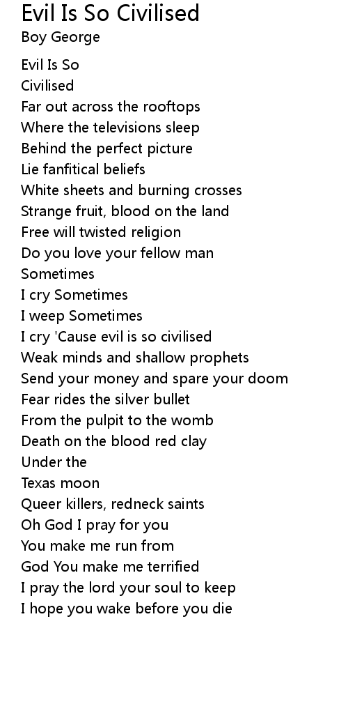 I cry 'Cause evil is so civilised |