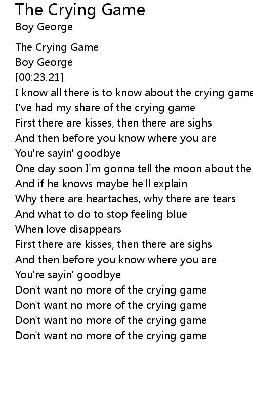 Don't want no more of the crying game |
