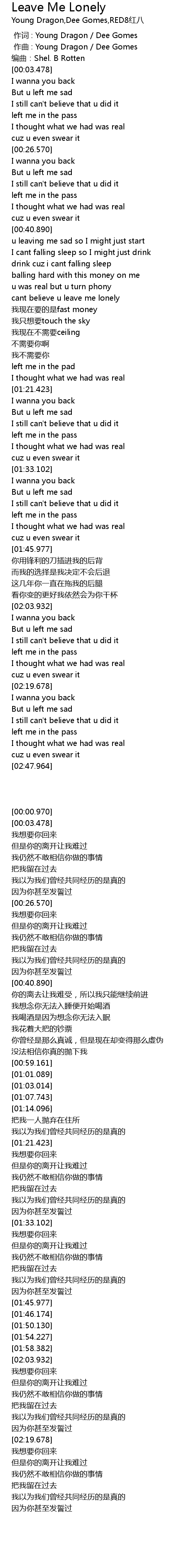 | [00:00.485] | zuo qu : Young Dragon Dee Gomes |