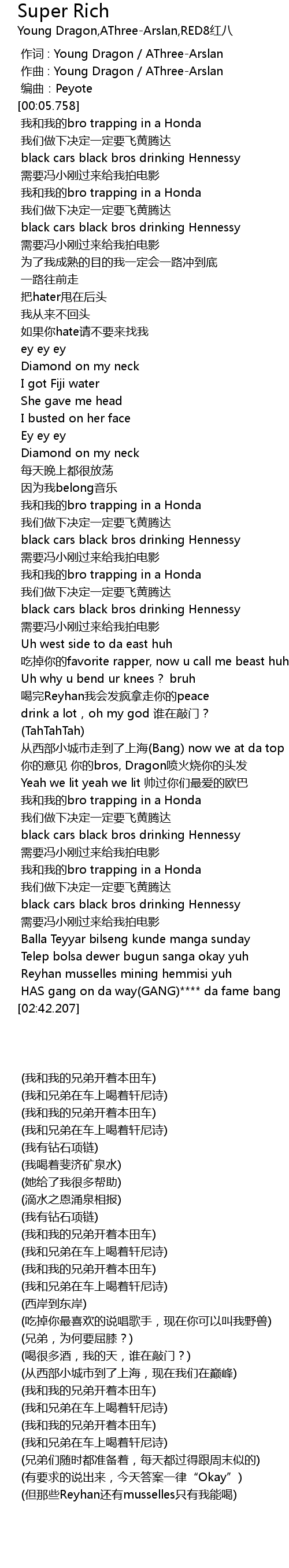 | [01:42.416] | 喝完Reyhan我会发疯拿走你的peace |