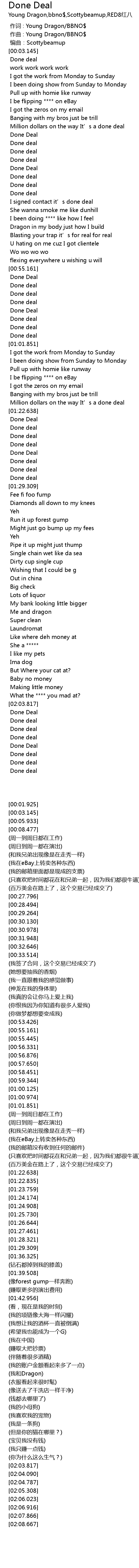 | [01:19.199] | Million dollars on the way It' s a done deal |