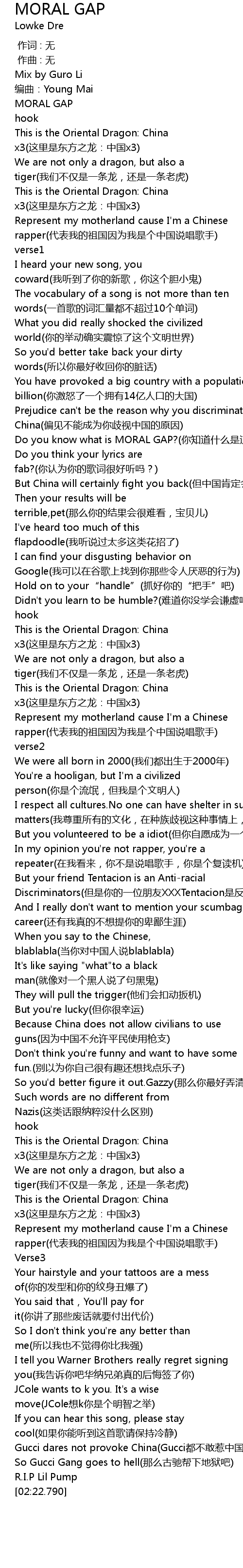 | Album | MORAL GAP(Lil Pump diss) |