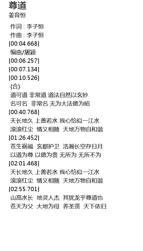 | [01:43.601] | 以道为尊 以德为贵 无所为 无所不为 |