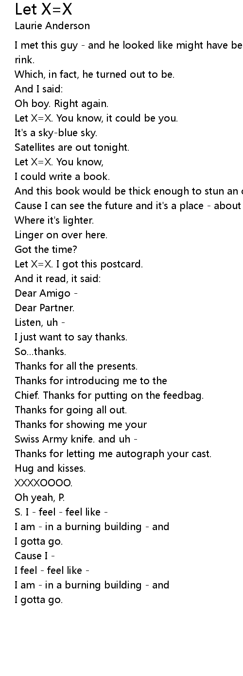 Let X=X. You know, it could be you. |