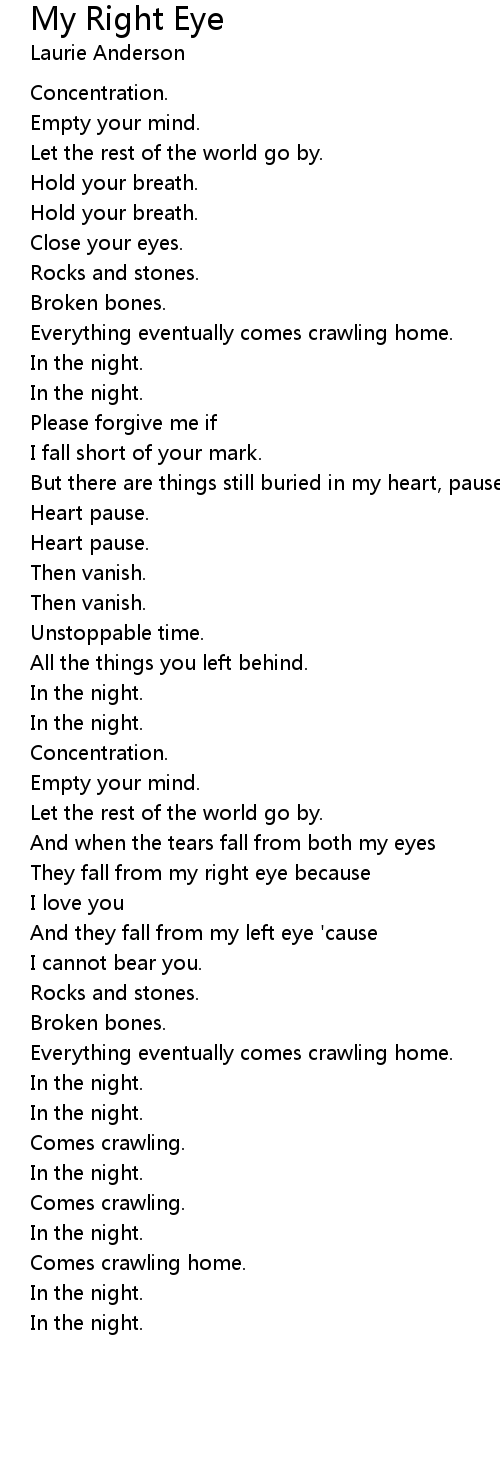 And they fall from my left eye 'cause |