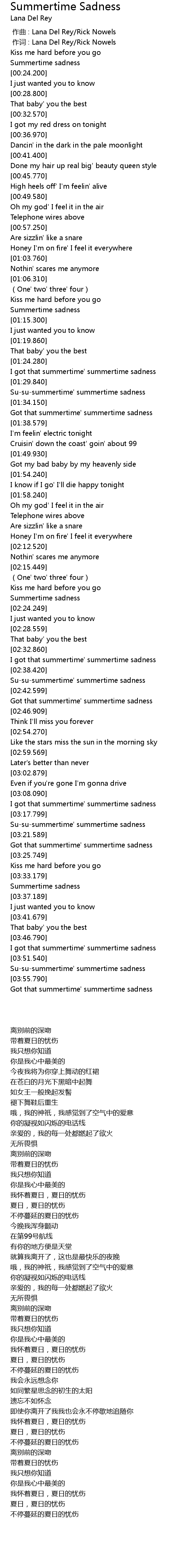 | [03:48.419] | I got that summertime' summertime sadness |