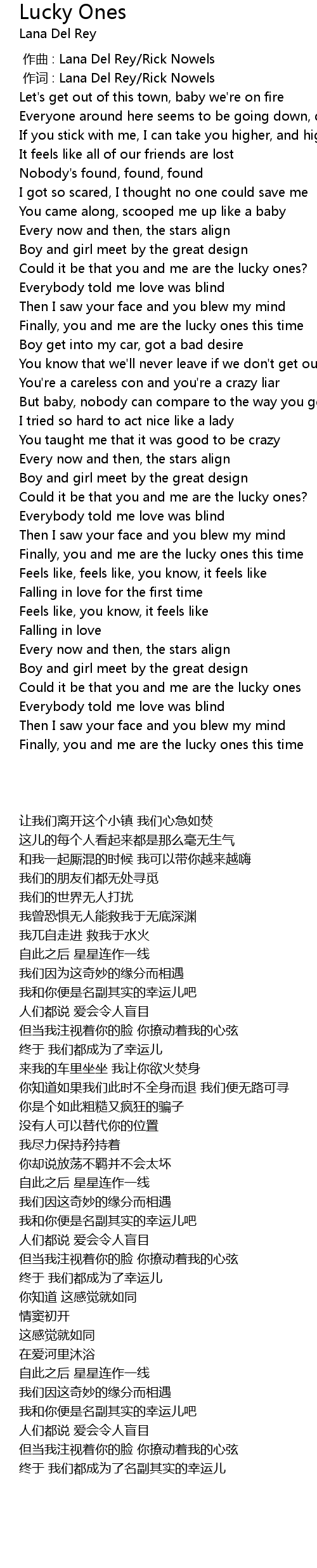 | [00:00.333] | zuò cí : Lana Del Rey Rick Nowels |