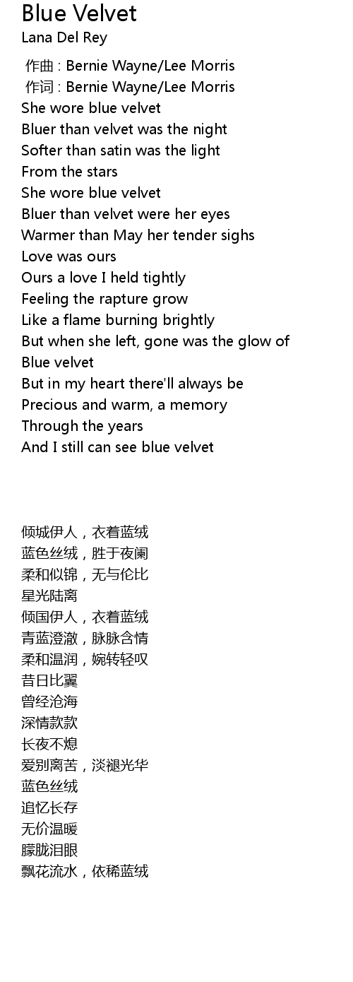 | [01:36.019] | Blue velvet |