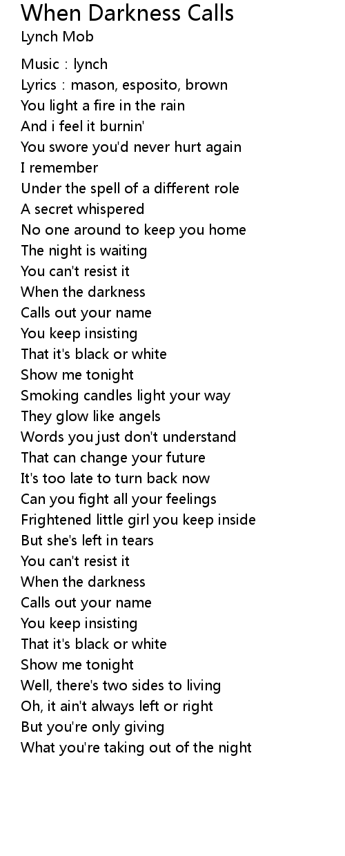 | Song | When Darkness Calls |