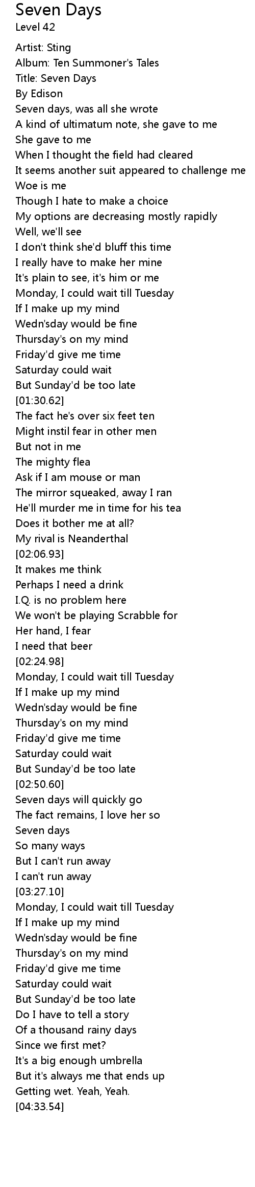 | [03:31.97] | Monday, I could wait till Tuesday |
