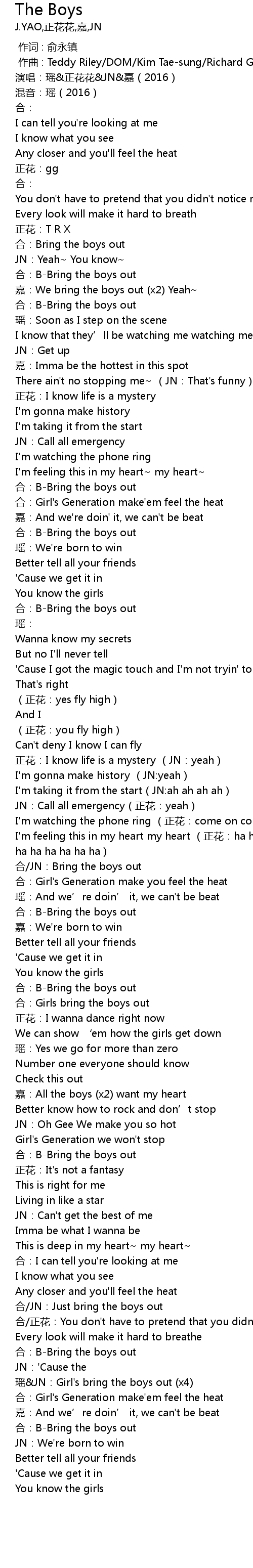 | [03:29.504] | yáo JN: Girl' s bring the boys out x4 |