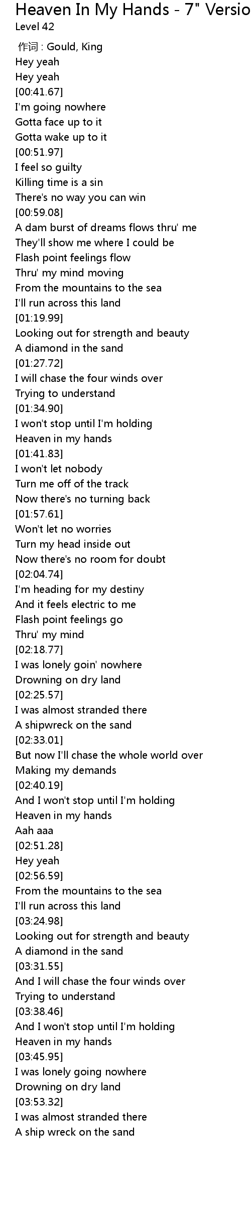 | [03:43.52] | Heaven in my hands |
