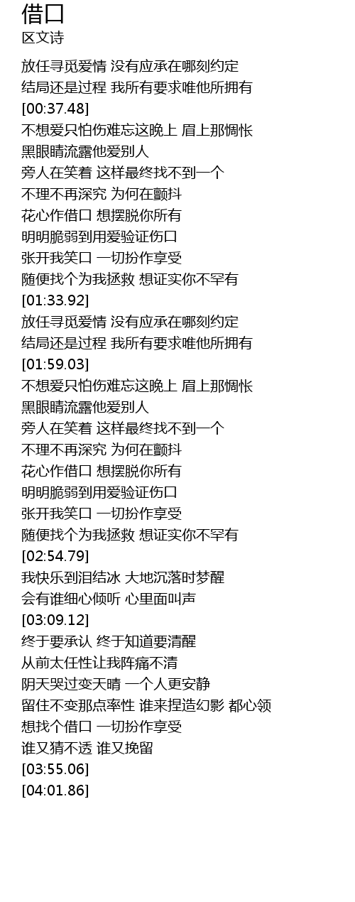 | [01:11.54] | 明明脆弱到用爱验证伤口 |