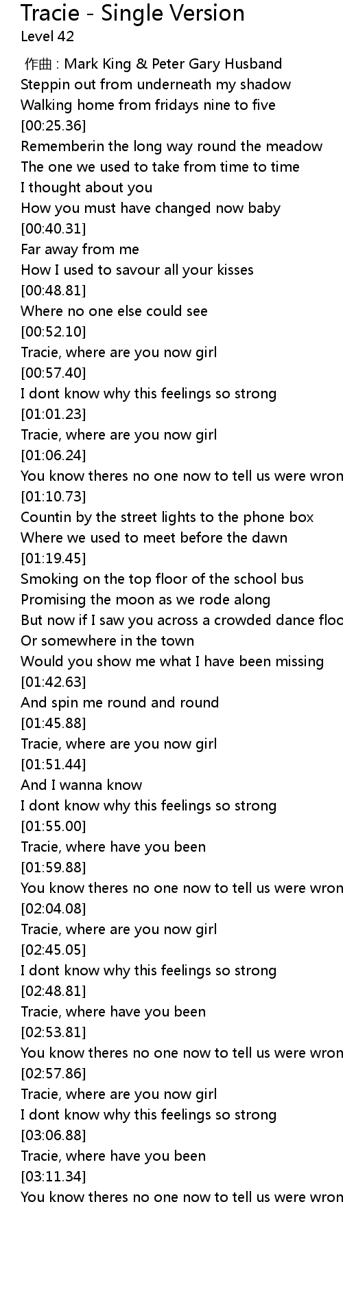 | [00:00.00] | 作曲 : Mark King & Peter Gary Husband |