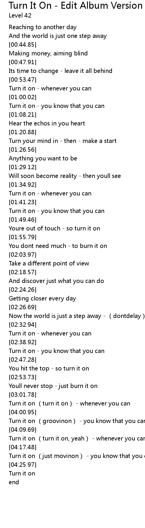 | [04:12.18] | Turn it on (turn it on, yeah) - whenever you can |