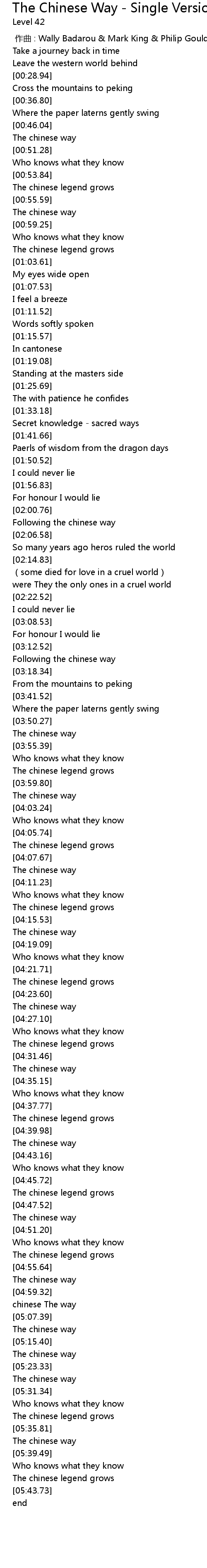 | [04:42.34] | The chinese way |