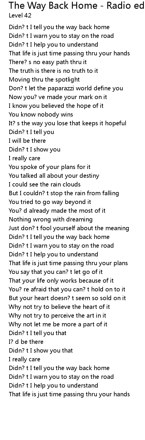 Didn? t I tell you the way back home |