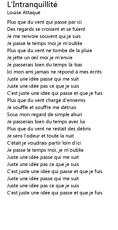 | Song | L'Intranquillité |