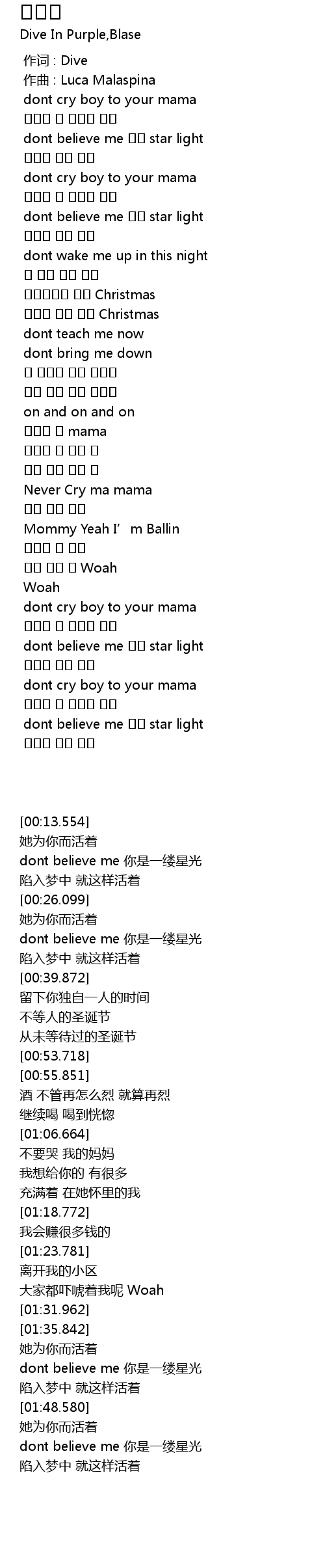 | [01:35.842] | dont cry boy to your mama |