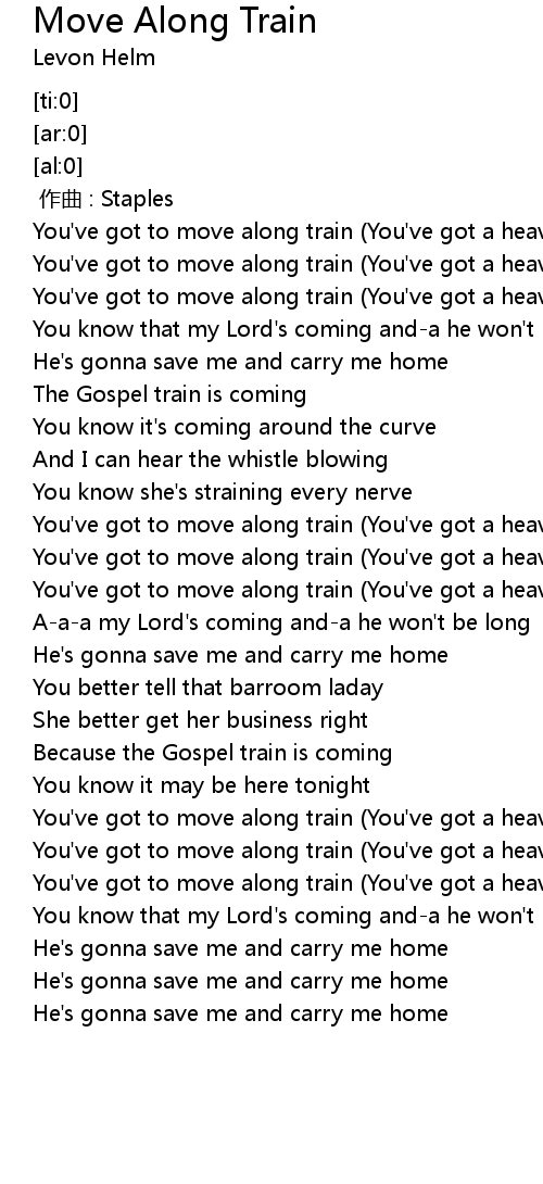| [00:17.980] | You've got to move along train (You've got a heavy load) |